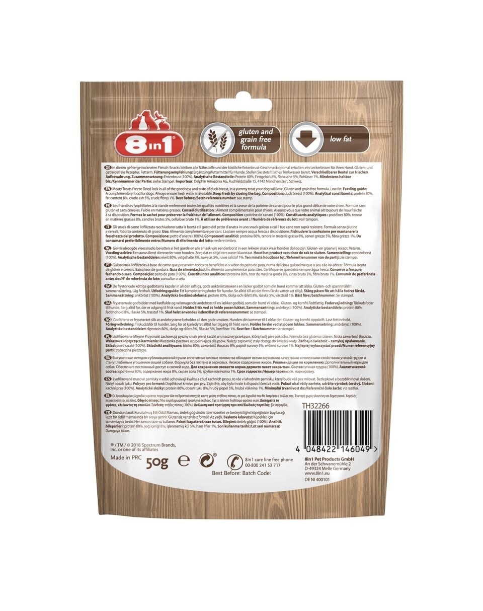 8in1 Meaty Treats Gefriergetrocknete Fleisch-Snacks 100% Entenbrust 50 g