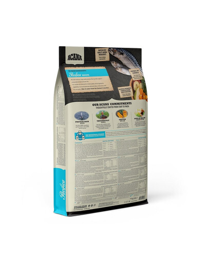 Frischer ganzer Hering (14%), frische ganze Sardinen (12%), frische ganze Flunder (8%), getrockneter Hering (8%), getrockneter Kabeljau (7%), getrockneter Weißfisch (7%), ganze grüne Erbsen, rote Linsen, Kichererbsen, grüne Linsen, Lachsöl (6%), frischer ganzer Silberhecht (4%), frischer ganzer Felsenbarsch (4%), gesprenkelte Bohnen, ganze gelbe Erbsen, sonnengereiftes Alfalfa, Sonnenblumenöl, Linsenfasern, brauner Seetang, frischer Kürbis, frischer Butternußkürbis, frische Pastinaken, frischer Gemüsekohl, frischer Spinat, frischer brauner Senf, frische Rübsamenblätter, frische Möhren, frische “Red Delicious”-Äpfel, frische “Bartlett”- Birnen, gefriergetrocknete Dorschleber (0,1%), frische Cranberries, frische Heidelbeeren, Chicoréewurzeln, Kurkuma, Mariendistel, große Klettenwurzeln, Lavendel, echte Eibischwurzeln, Hagebutten.