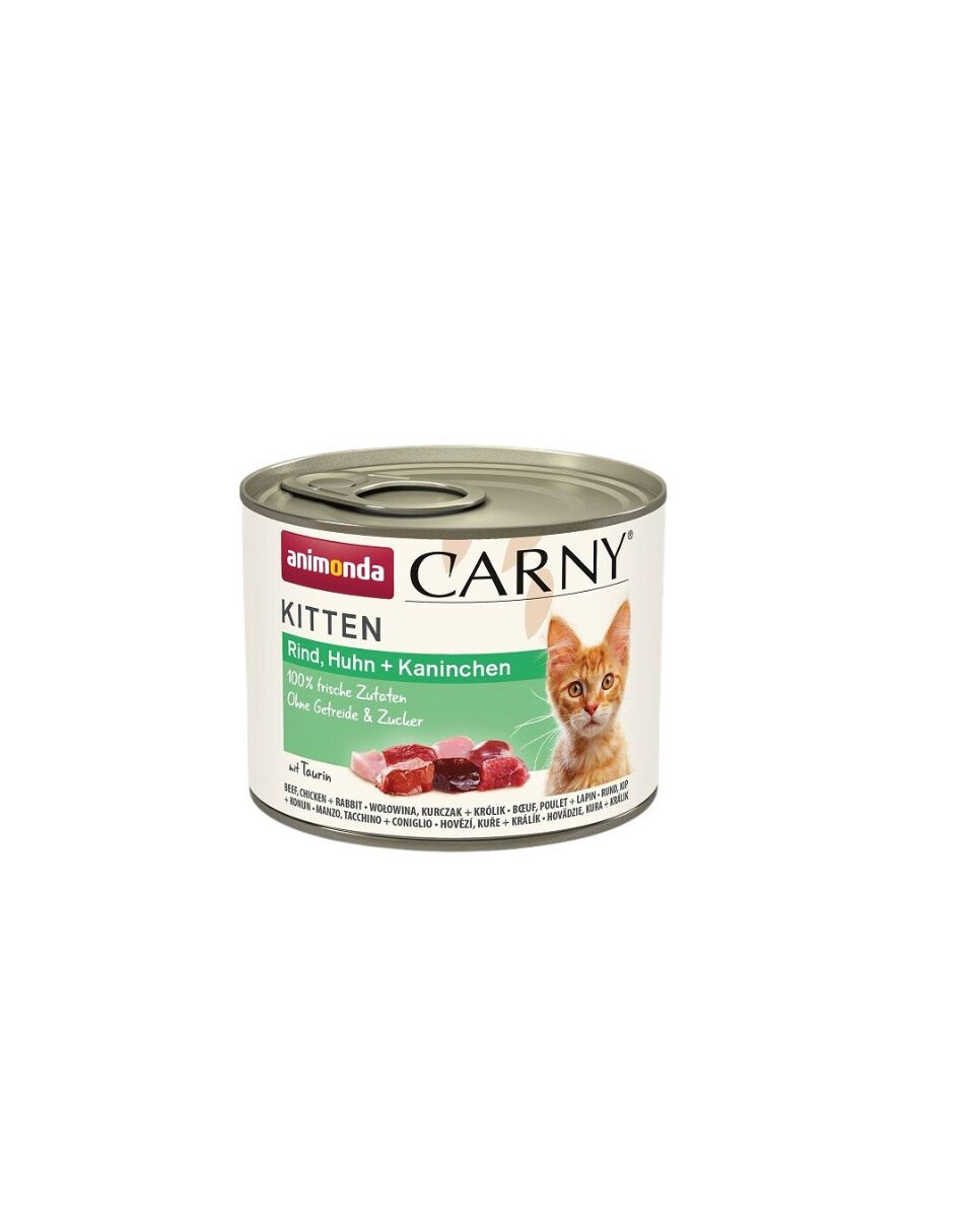Carny Kitten Beef&Chicken&Rabbit: In diesem Nassfutter für Kätzchen wird köstliches Rindfleisch mit leicht verdaulichem Huhn und leckerem Kaninchen kombiniert! Perfekt abgestimmt auf die Bedürfnisse von heranwachsenden Kätzchen im ersten Lebensjahr