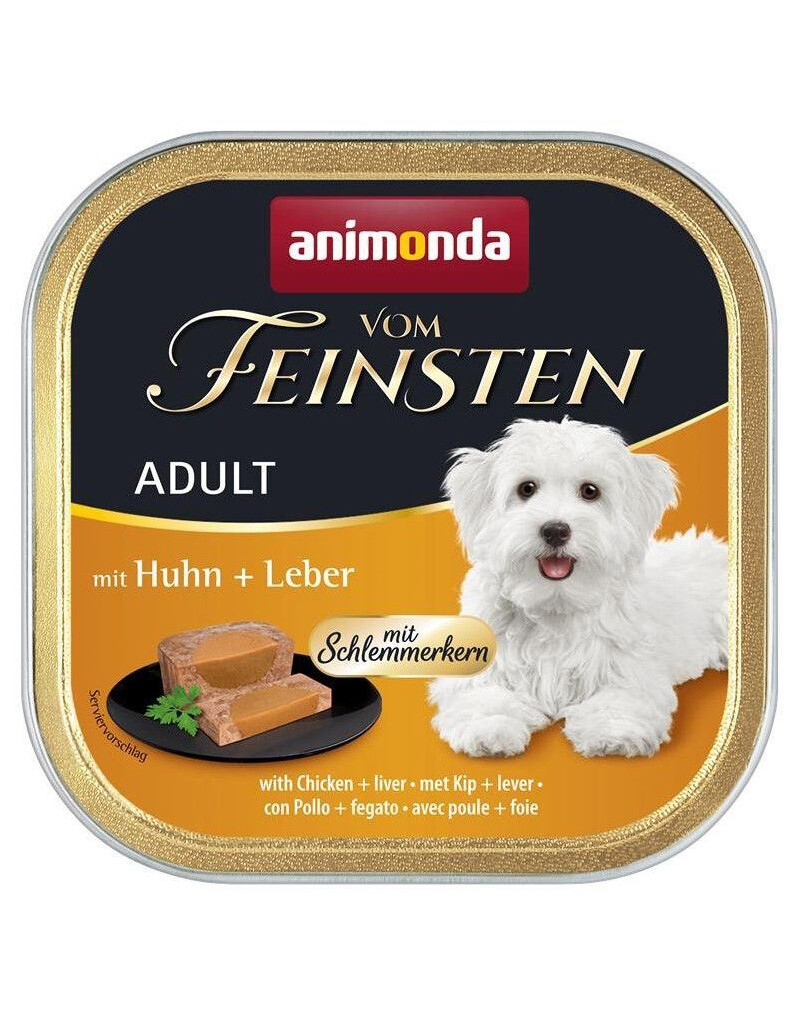 Vom Feinsten Gourmet Centre mit Huhn und Leber ist ein Alleinfuttermittel für ausgewachsene Hunde von 1 bis 6 Jahren. Es präsentiert sich als zarte Pastete mit einem köstlichen, cremigen Kern. Die Kombination ausgewählter Fleischzutaten sorgt für außergewöhnlichen Geschmack und ein wahres Geschmackserlebnis.