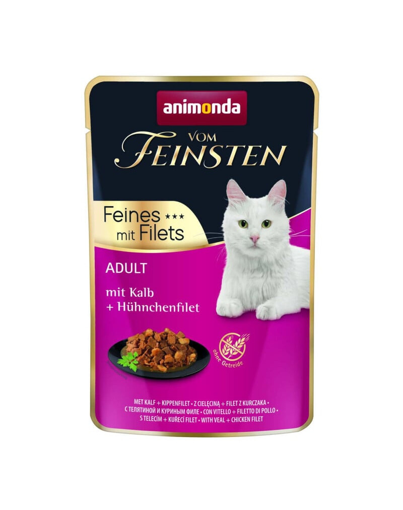 Vom Feinsten Adult Feines mit Filets ist ein vollwertiges Futter, das für erwachsene Katzen im Alter von 1 bis 6 Jahren entwickelt wurde und zarte Stücke von Kalbfleisch mit köstlichem Hähnchenfilet kombiniert. Fleischstücke in aromatischer Sauce bieten ein außergewöhnliches Geschmackserlebnis, das selbst die wählerischsten Tiere begeistern wird.