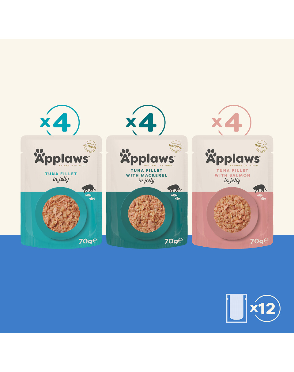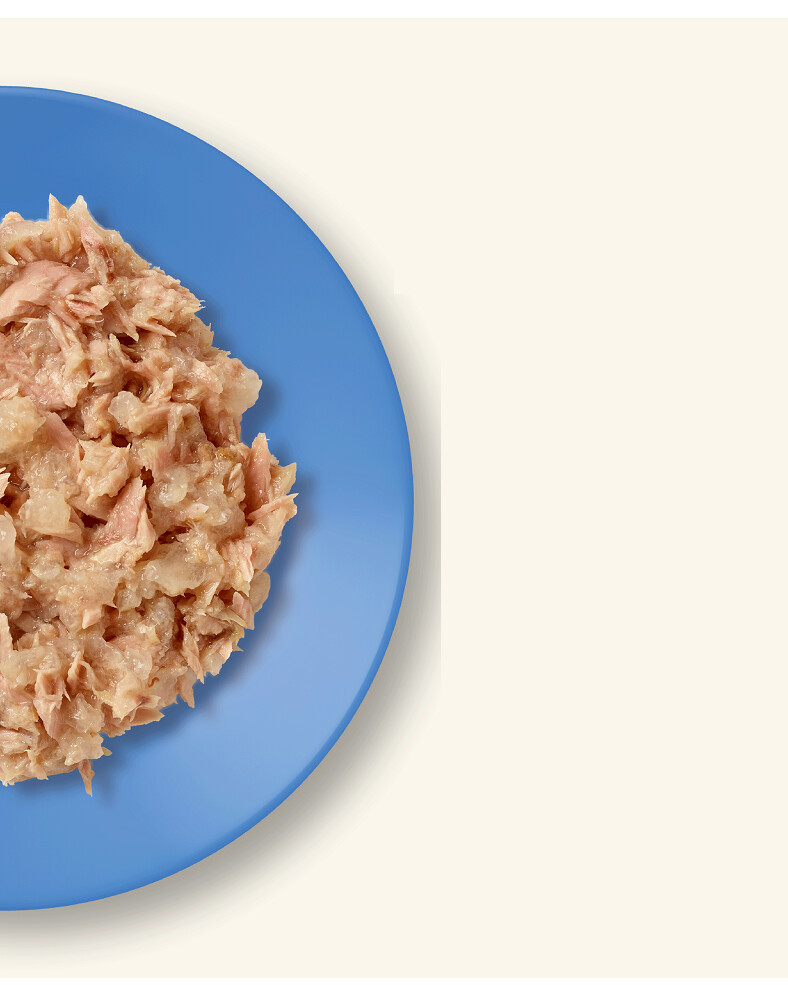 Zutaten: Thunfischfilet (55 %), Lachs (5 %), Reismehl, pflanzliches Geliermittel.