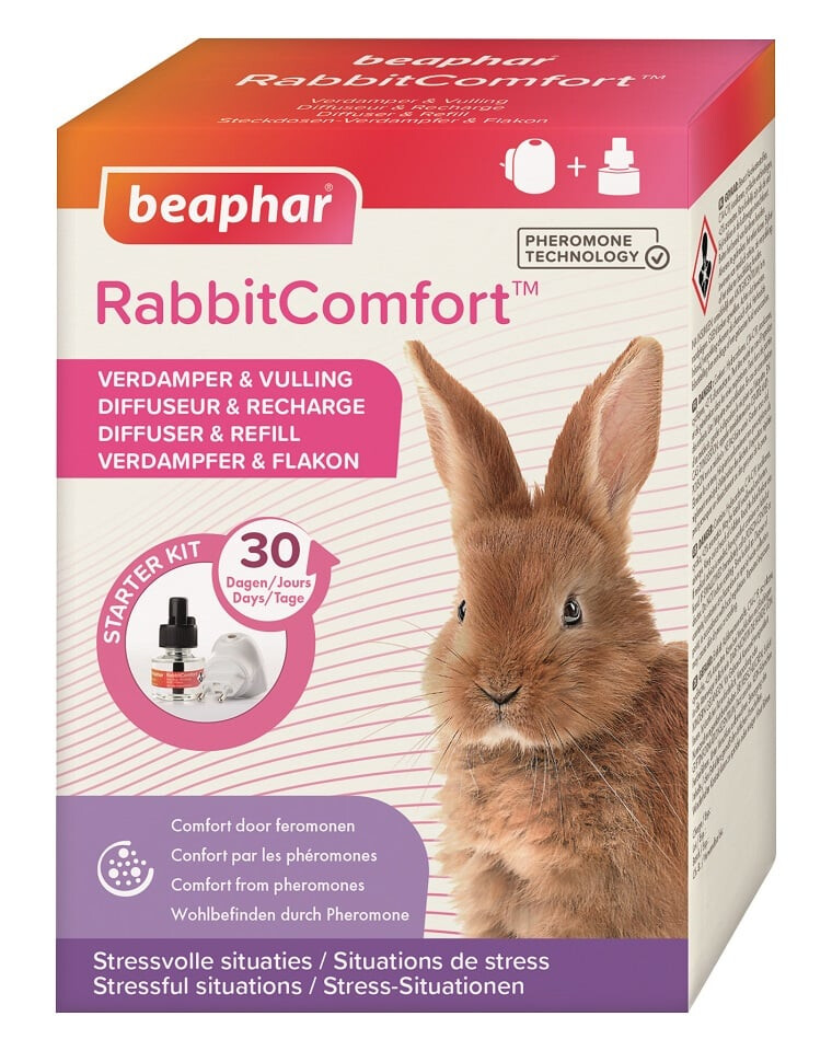 Beaphar RabbitComfort Calming Diffuser ist eine einfache und wirksame Lösung, um häufige Verhaltensprobleme bei Kaninchen wie Verstecken, aggressives Verhalten gegenüber Menschen oder anderen Kaninchen, Appetitlosigkeit oder allgemeine Unruhezu reduzieren. Es ist hilfreich, wenn Ihr Kaninchen eine neue Erfahrung macht, wie z.B. eine Lernphase, ein neues Zuhause oder eine neue Familie oder das Kennenlernen anderer Kaninchen. Die beruhigende Wirkung unterstützt Ihr Kaninchen auch in anderen stressigen Situationen wie Urlaub mit Ihrem Haustier, Tierarztbesuche, Gewitter, Feuerwerk und laute Geräusche.