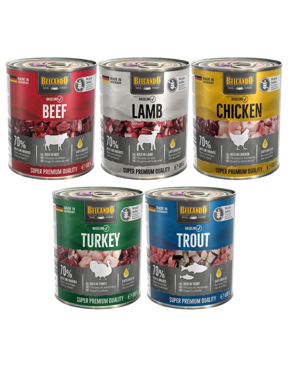 Rindfleisch, Lunge, Herz, Milz, Euter (26 %); Fleischbrühe (28,8 %); Fleisch; Leber; Magen; Herz; Nieren; Lunge; getrocknete Eierschalen; Mineralstoffe; Distelöl (0,2 %)