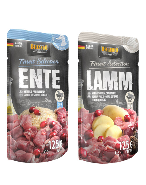 BELCANDO Finest Selection Ente mit Reis & Preiselbeeren + Lamm mit Kartoffeln & Cranberries 24x125 g