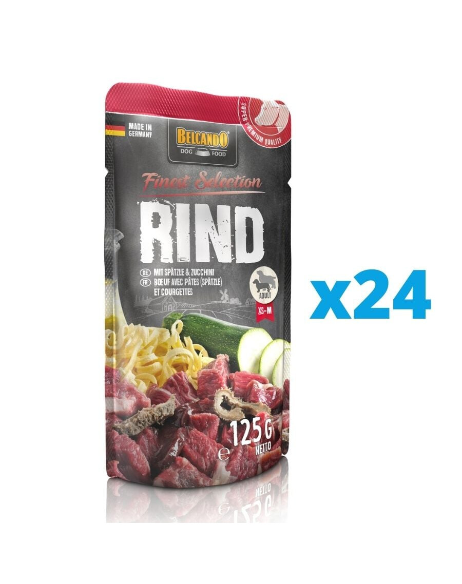 Exzellente Rezepturen in praktischen Einzelportionen. Saftiges Fleisch, mit raffinierten Zutaten verfeinert, wird schonend im Portionsbeutel gegart. Kalt gepresstes Distelöl liefert essentielle ungesättigte Fettsäuren. Außergewöhnlich schmackhaft und bekömmlich eignet sich BELCANDO® Finest Selection hervorragend für sensible oder wählerische Hunde.