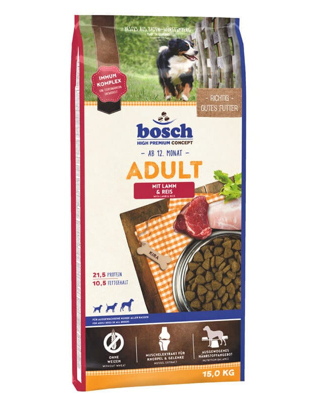 ADULT mit LAMM & REIS ist eine ausgewogene Vollnahrung für alle ausgewachsenen Hunde mit normaler Aktivität.