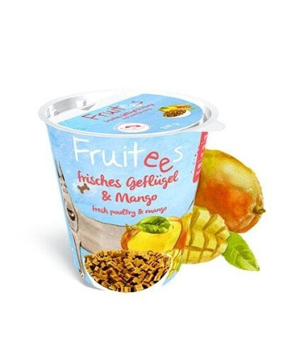 FRUITEES frisches Geflügel & Mango sind wohlschmeckende, saftige Knöchelchen mit 20 % frischem Geflügel zur gesunden Belohnung und für das optimale Training Ihres Hundes zu jeder Gelegenheit. Mango enthält wertvolle Ballaststoffe und natürliche antioxidativ wirkende Pflanzenstoffe. FRUITEES mit Mango wird mit einer Restfeuchte von 28 % als halbfeuchtes Ergänzungsfuttermittel hergestellt, haben daher eine weiche Konsistenz und überzeugen durch eine extrem hohe Akzeptanz.