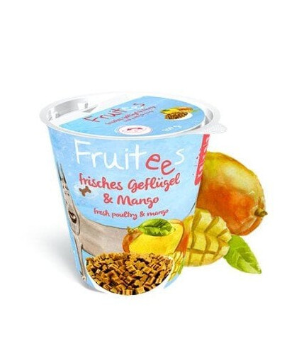 FRUITEES frisches Geflügel & Mango sind wohlschmeckende, saftige Knöchelchen mit 20 % frischem Geflügel zur gesunden Belohnung und für das optimale Training Ihres Hundes zu jeder Gelegenheit. Mango enthält wertvolle Ballaststoffe und natürliche antioxidativ wirkende Pflanzenstoffe. FRUITEES mit Mango wird mit einer Restfeuchte von 28 % als halbfeuchtes Ergänzungsfuttermittel hergestellt, haben daher eine weiche Konsistenz und überzeugen durch eine extrem hohe Akzeptanz.
