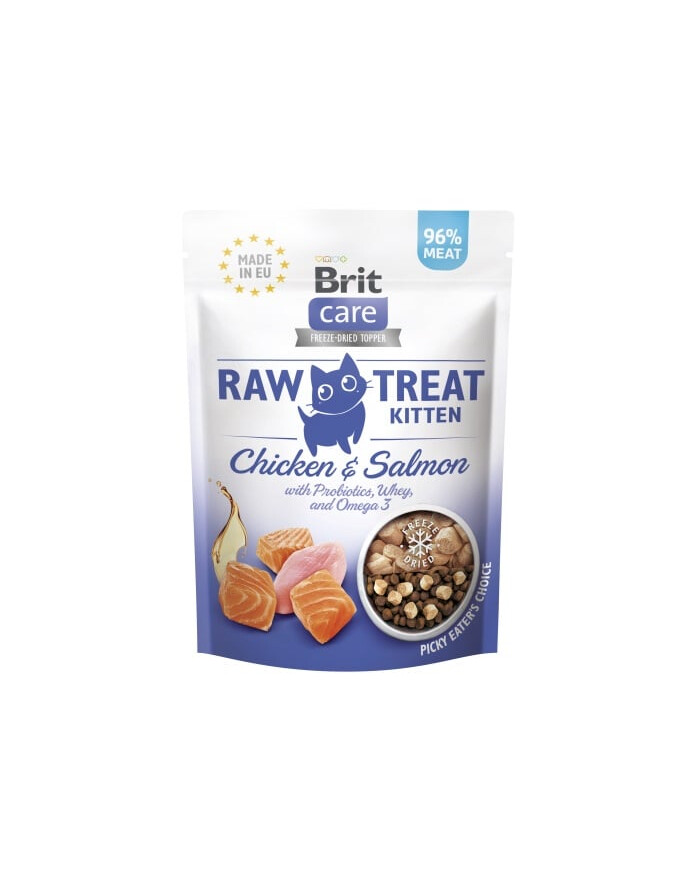 BRIT Care Raw Treat Freeze Dried Kitten ist ein einzigartiger Leckerbissen, der zu 96% aus Fleisch besteht und reich an Molke, Probiotika und Omega-3-Fettsäuren ist. Diesergefriergetrocknete Leckerbissen wurde speziell für die Bedürfnisse von heranwachsenden Kätzchen entwickelt, um ihre Entwicklung, Gesundheit und Vitalität zu unterstützen. Die in den Leckerbissen enthaltenen Probiotika unterstützen das sich entwickelnde Verdauungssystem Ihres Kätzchens und tragen zur Erhaltung einer gesunden Bakterienflora und einer optimalen Verdauung bei. Omega-3-Fettsäuren sind wichtig für die Entwicklung des Gehirns und des Sehvermögens, stärken das Immunsystem und tragen zu einem gesunden, glänzenden Fell bei.