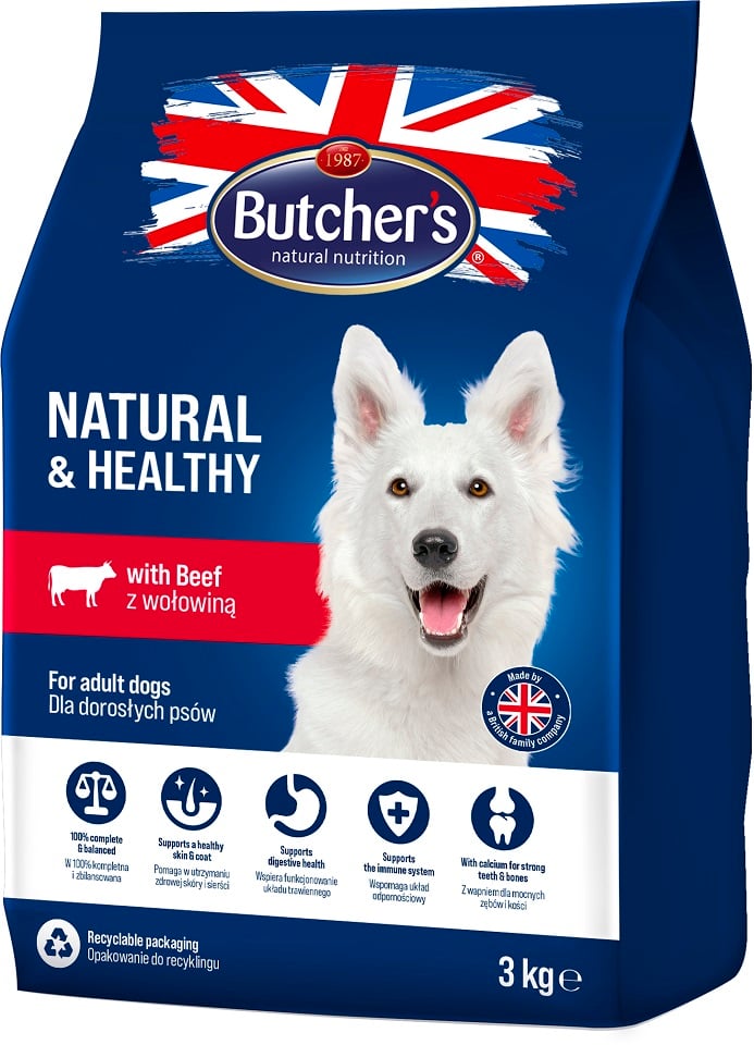 1x BUTCHER'S Natural&Healthy Hundetrockenfutter mit Rindfleisch 3 kg