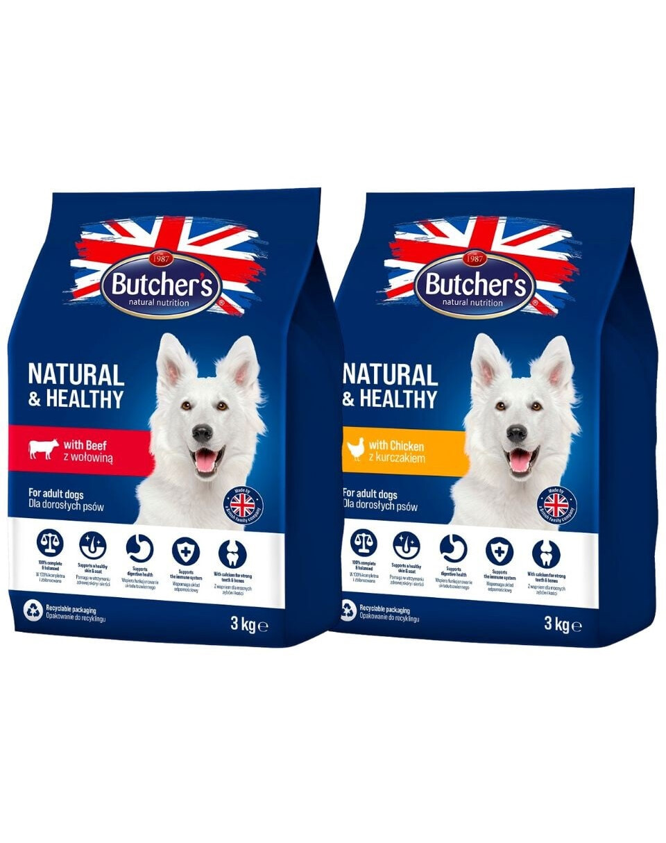 BUTCHER'S Natural&Healthy Mix: Hundetrockenfutter mit Huhn und Rindfleisch 2 x 3 kg enthält:
