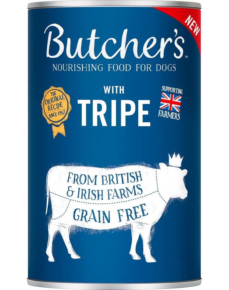 Butcher's Original Tripe ist ein mit Rinderpansen angereichertes Alleinfuttermittel, das auf den täglichen Bedarf von Haustieren abgestimmt ist. Alle Produkte werden aus natürlichen Zutaten hergestellt und sind in umweltfreundlichen Verpackungen verpackt.
