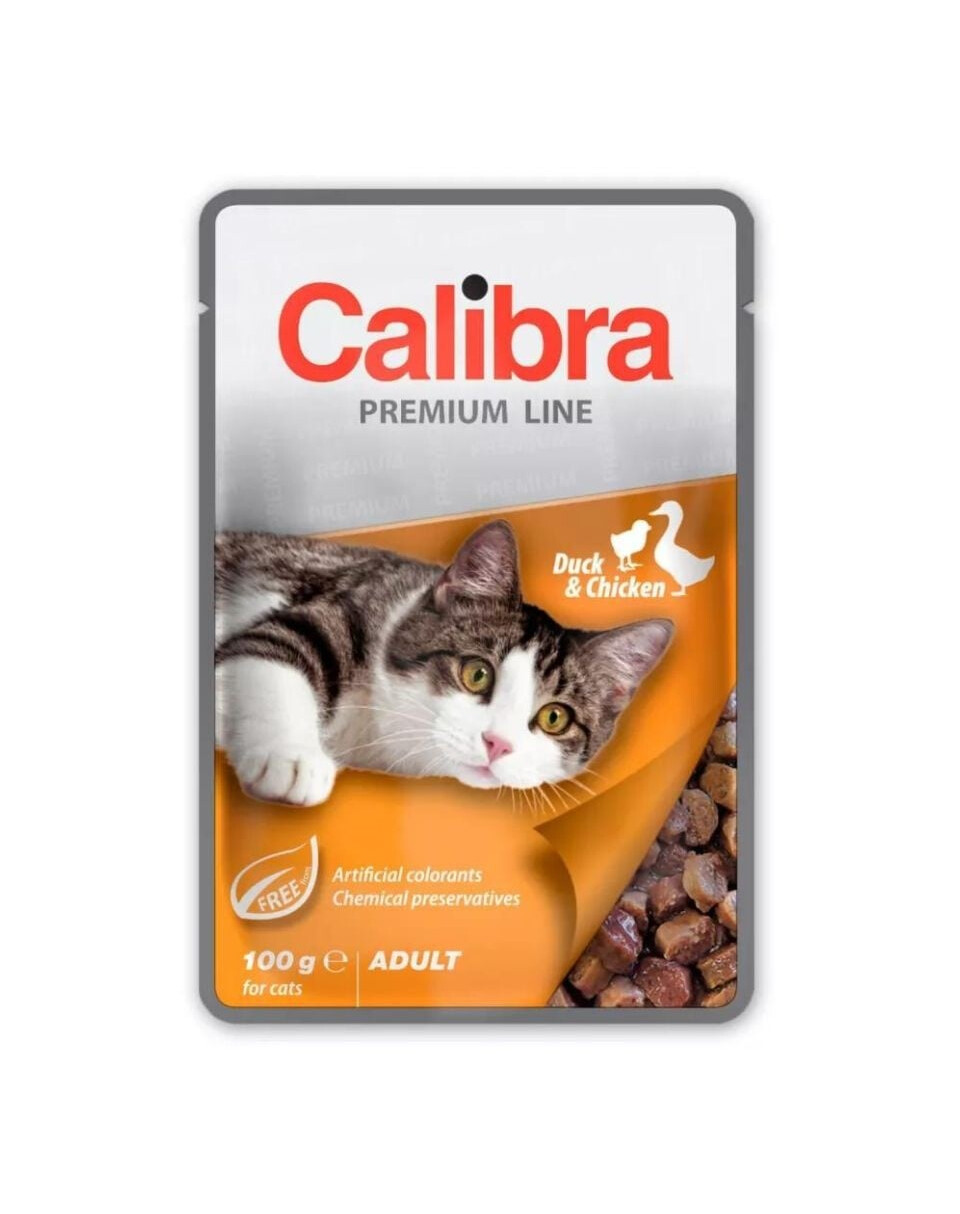 Calibra Cat Premium Adult Ente & Huhn ist ein Alleinfuttermittel für Katzen mit Ente und Huhn in Sauce.