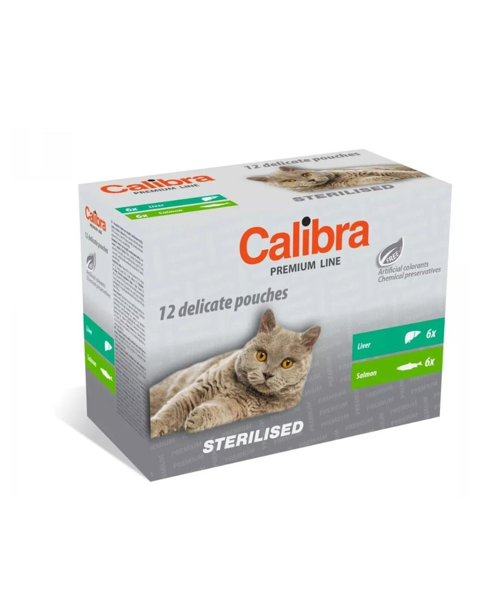 Calibra Cat Premium Sterilised Multipack ist eine Mischung aus kompletten Beuteln für kastrierte Katzen.