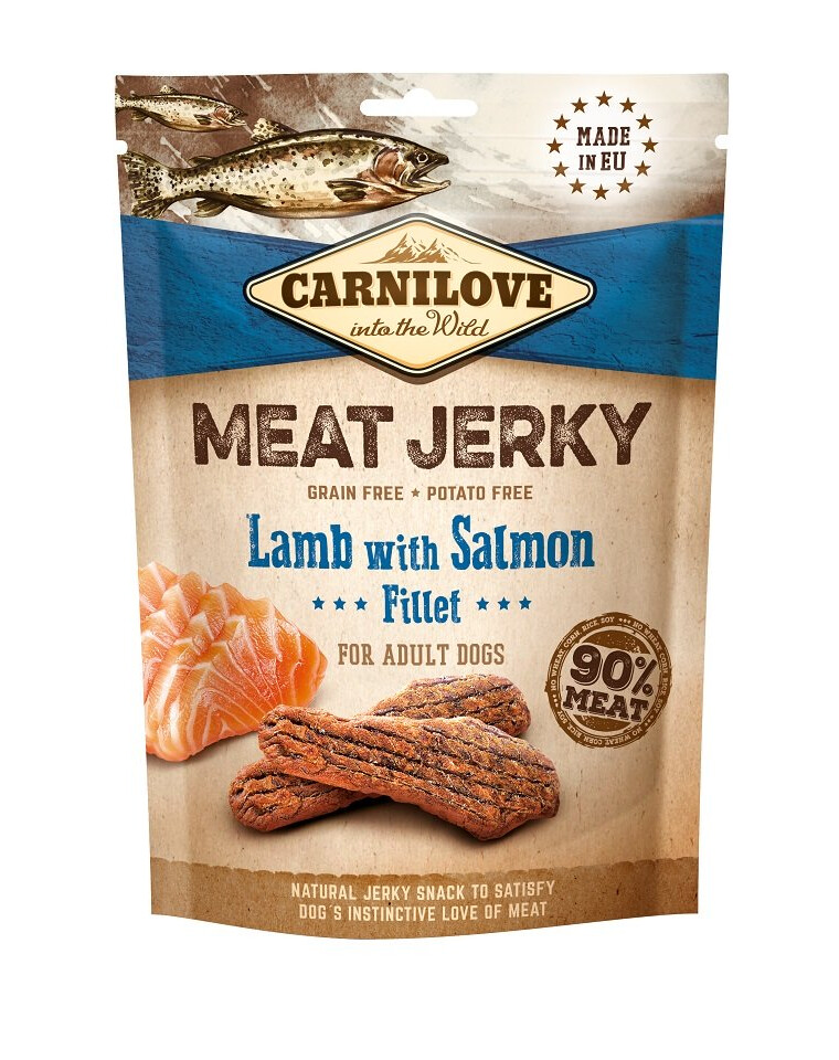 Ergänzungsfuttermittel für ausgewachsene Hunde mit Lamm- und Lachsfilet.