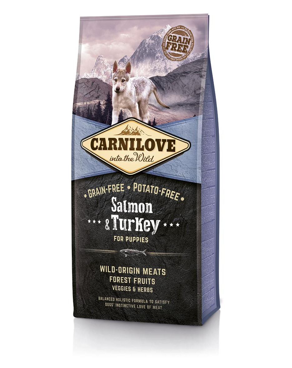 Hochwertige Nahrung mit hohem Gehalt an essentiellen Aminosäuren, Vitaminen und Mineralstoffen sind für das gesunde Wachstum von Welpen von entscheidender Bedeutung. Carnilove Puppy wurde so zusammengestellt, dass es der ursprünglichen natürlichen Ernährung von Hunden und ihrem genetischen Vorfahren, dem Wolf, möglichst nahe kommt. Seine Ernährung bestand vorwiegend aus Muskelgewebe, Innereien und Knochen der Beute, ergänzt durch die richtige Menge an Wildbeeren, Gemüse und Kräutern. Alle diese Bestandteile sind wesentlich für die gesunde Entwicklung der Knochen, Gelenke und Muskeln. Lachsfleisch und -öl liefern die Omega-Fettsäuren, die für den gesunden Zustand von Haut und Fell und die optimale Entwicklung des Nervensystems notwendig sind.