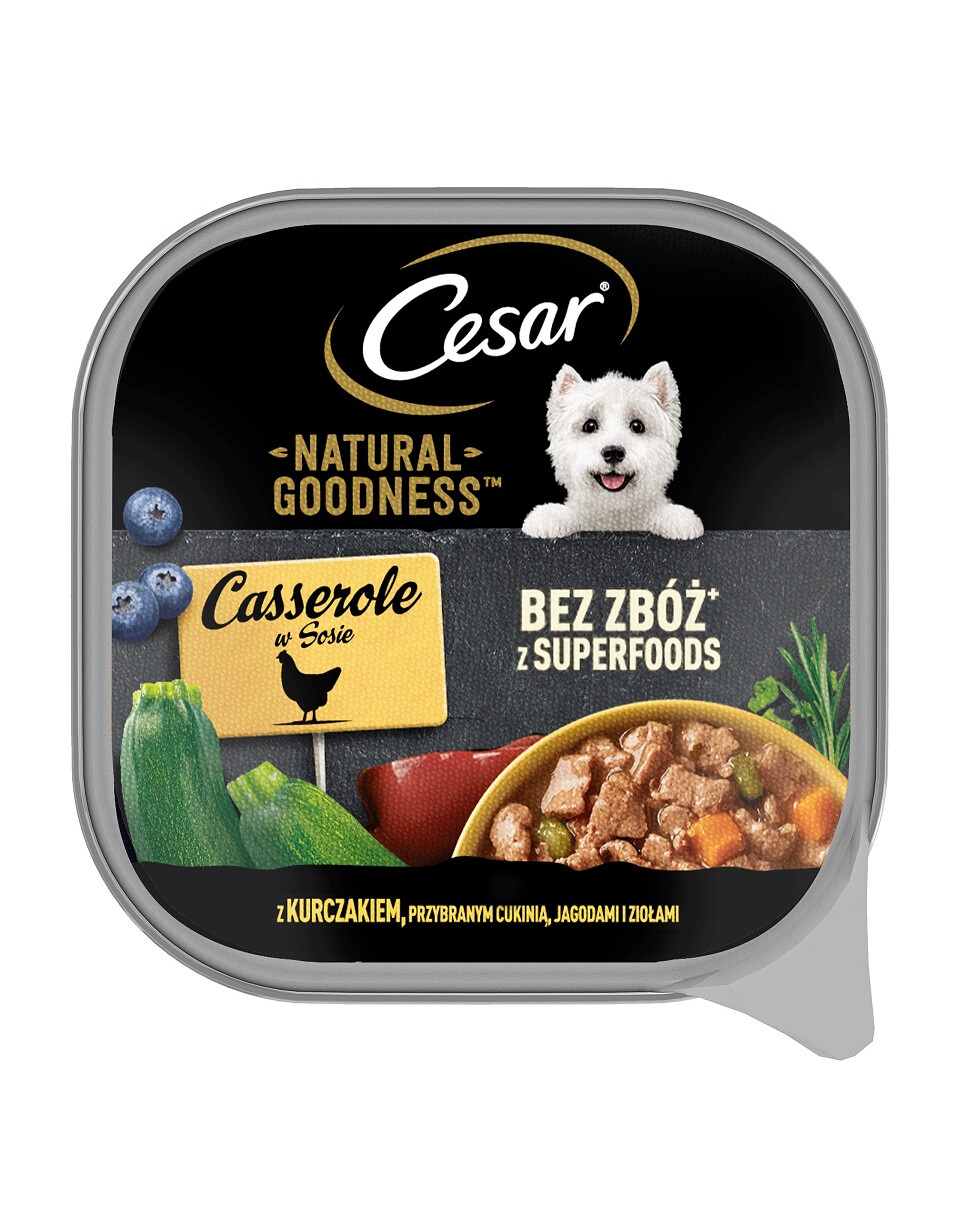 Cesar Natural Goodness Futter mit Huhn wurde mit einer sorgfältig ausgewählten getreidefreien Rezeptur zubereitet, die den Hund mit allem versorgt, was er täglich braucht. Dieses Futter ist ideal für eine frische und leckere tägliche Mahlzeit. Sie können dieses Futter mit Trockenfutter oder als eigenständige Mahlzeit füttern. Es ist mit Huhn gewürzt und mit Zucchini, Beeren und Kräutern garniert - Huhn ist eine Proteinquelle, Zucchini eine Quelle für Vitamine und Mineralien. Das Hundefutter Cesar Natural Goodness wurde so zubereitet, dass sein natürlicher Nährwert und sein köstlicher Geschmack erhalten bleiben. Ernährungswissenschaftler und Tierärzte des WALTHAM Institute of Animal Science waren an der Entwicklung beteiligt.