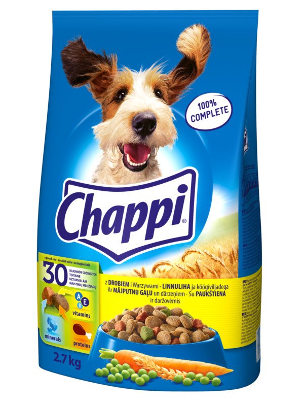2 CHAPPI Hundetrockenfutter mit Geflügel und Gemüse ist eine vollständige und ausgewogene Trockenmahlzeit, die in Zusammenarbeit mit Ernährungswissenschaftlern und Tierärzten des WALTHAM Institute of Animal Science entwickelt wurde. Die sorgfältig ausgewählte Rezeptur dieses Hundefutters versorgt Ihren Liebling mit mehr als 30 Nährstoffen, darunter: Fettsäuren, wertvolle Hundevitamine (A, E, D3), Mineralstoffe und Proteine. So wird sichergestellt, dass die tägliche Ernährung Ihres Hundes korrekt ist und die richtige Ernährung ein glückliches und gesundes Leben gewährleistet.