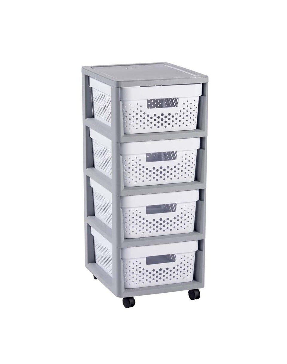 Verfügt über vier Schubladen mit einem Fassungsvermögen von je 11 Litern