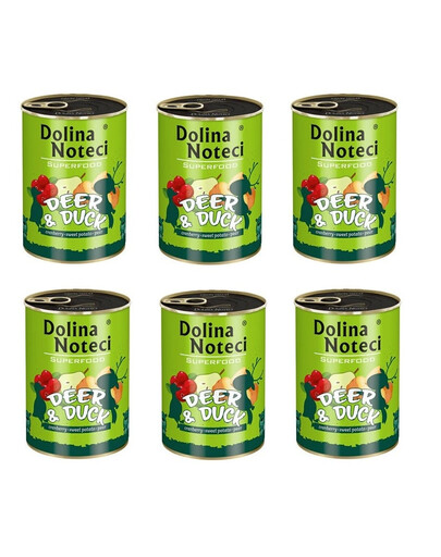 Hirsch 40% (Fleisch 20%, Lunge, Leber), Ente 40% (Leber, Herz, Muskelmagen, Fleisch 5%), Brühe, Preiselbeeren 3%, Mineralstoffe, Süßkartoffel 1%, Erbsen 0,5%, Birne 0,5%, getrocknete Bierhefe 0,3% (Quelle für Präbiotika: Mannanooligosaccharide und B-Glucane), Leinsamen 0,1%, Flohsamen, Mojave-Yucca, Meeresalgen, neuseeländische Grünlippmuschel 0,02%, Glucosamin 0,02%, Chondroitinsulfat 0,02%