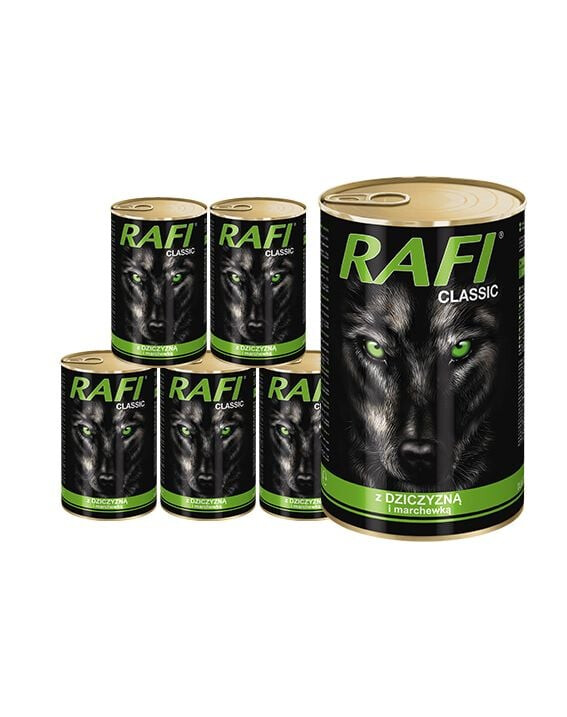 Zutaten: Fleisch und tierische Produkte 66% in Stücken (einschließlich 4% Wildbret), Getreide, Gemüse (4% Karotten), Mineralien, Zucker.
