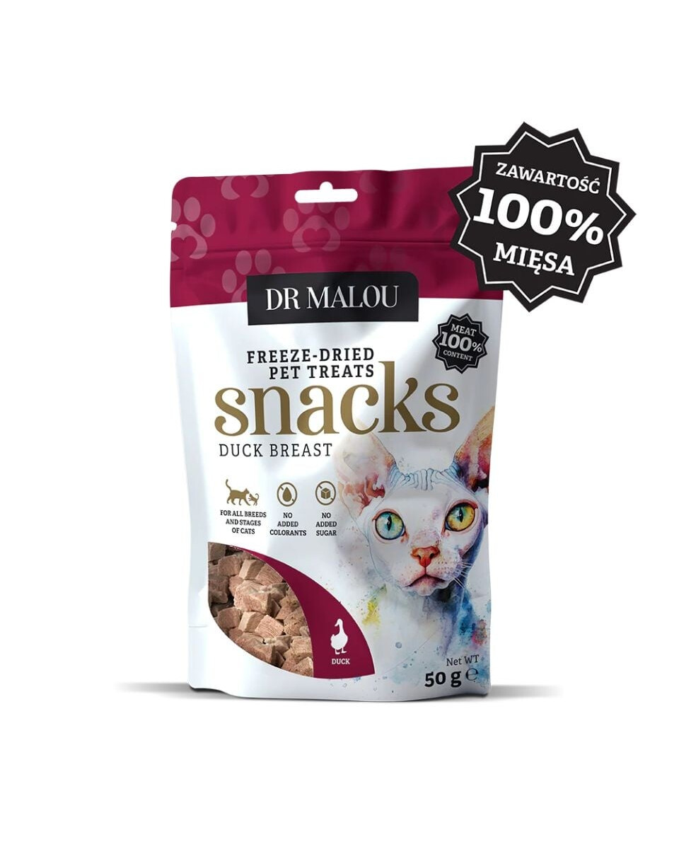 Besondere, gesunde und natürliche Snacks für Ihre Katze! Die gefriergetrockneten Würfel von Dr Malou sind ein Ergänzungsfutter, dessen Zusammensetzung für sich selbst spricht – 100% Fleisch von Entenbrust. Ohne unnötige Zusätze, Konservierungsstoffe, Farbstoffe, Getreide und Zucker. Nur reine Qualität und volle Nährstoffwerte!