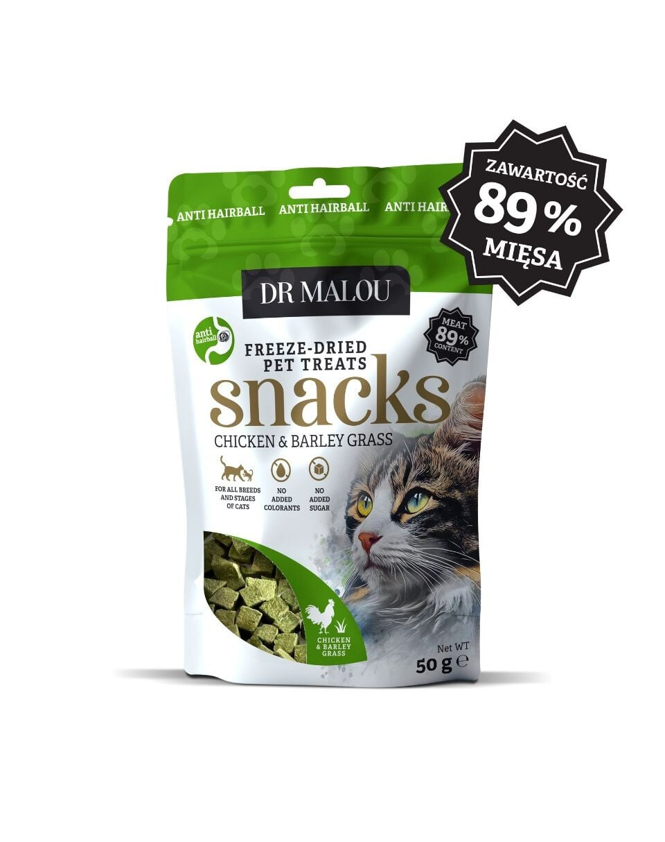 Ergänzungsfutter für Katzen – 100% gefriergetrocknete Happen mit Huhn und Gerstengras Dr Malou