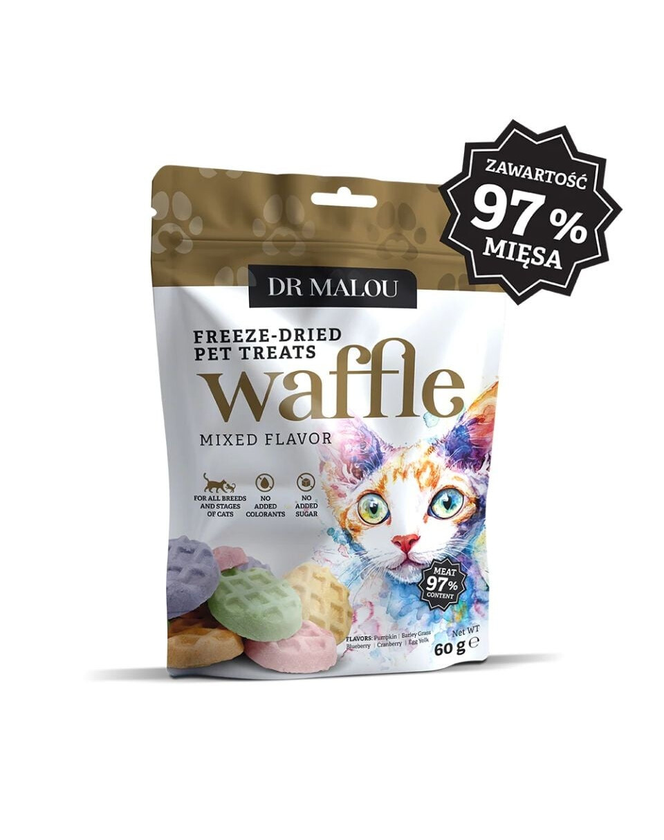 DR MALOU Waffle Mixed Flavor Gefriergetrocknete Waffeln mit Huhn für Katzen 60g