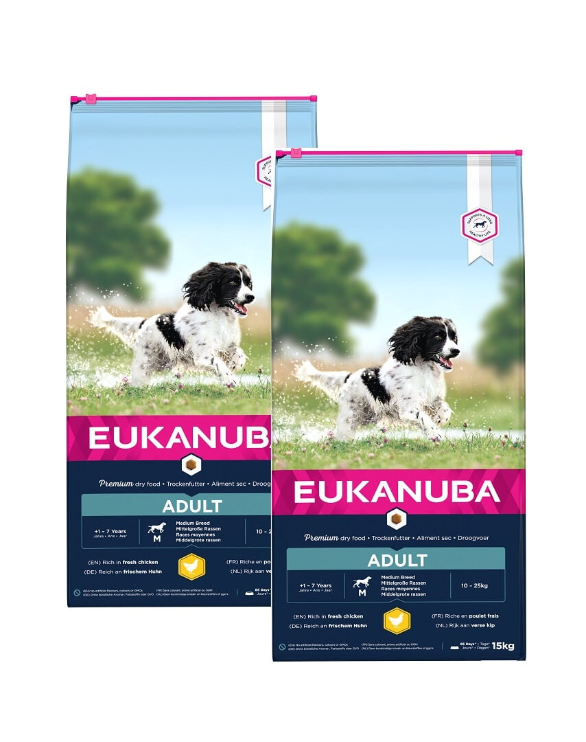 EUKANUBA Active Adult Medium Breed ist ein Hundefutter für mittelgroße Rassen mit frischem Huhn.