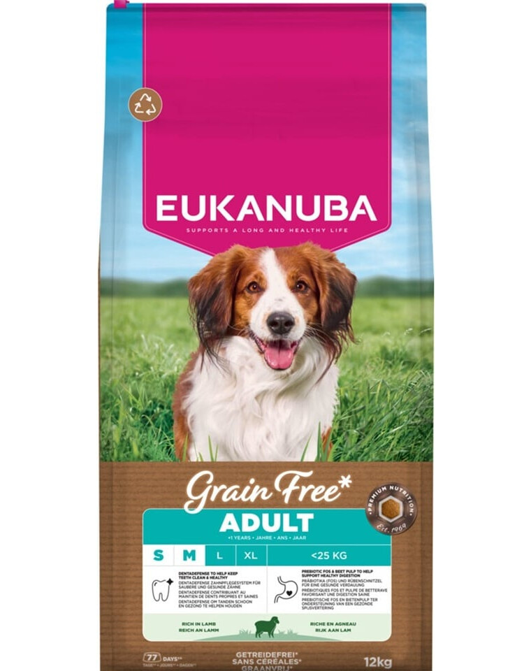 EUKANUBA Grain Free Adult Small Medium Lamb 12 kg bezzbóżowa karma dla psów małych i średnich ras z jagnięciną