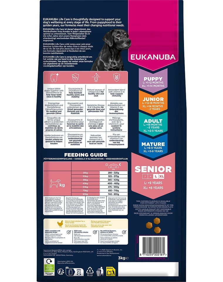 EUKANUBA Senior Large Breeds Chicken 3 kg sucha karma dla starszych psów ras dużych bogata w świeżego kurczaka