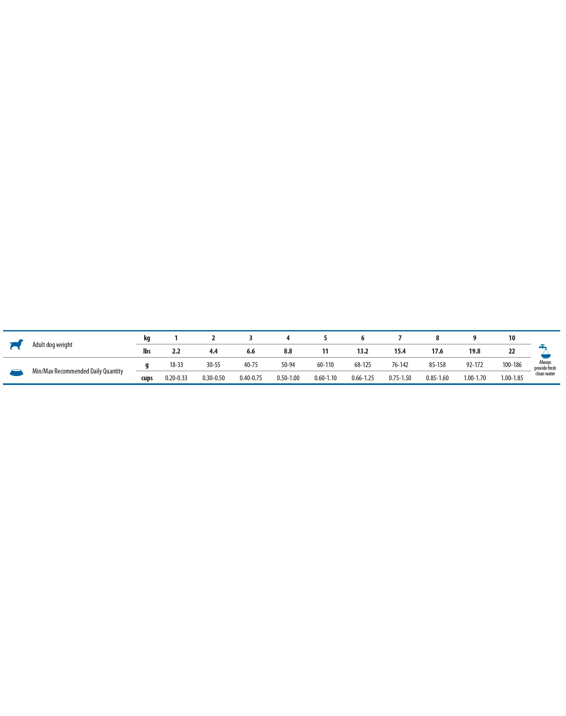 Hering (24%), dehydriertes Heringseiweiß (23%), Yamswurzel, Fischöl (Hering), getrocknete Spirulina (5%), Leinsamen, getrocknete Goji-Beeren (Akelei) (2.5%), Erbsenfasern, getrocknete Karotten, Luzernenmehl, Chicorée-Inulin, Fructooligosaccharide, Hefeextrakt (Quelle für Mannooligosaccharide), getrockneter Spinat, Flohsamen und -schalen, Natriumchlorid, getrocknete Bierhefe, Kurkuma, Aloe-Vera-Extrakt, Glucosamin, Chondroitinsulfat.