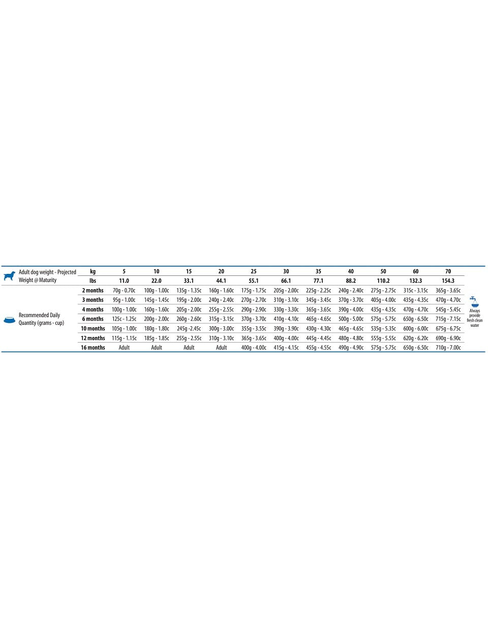 Die angegebene Fütterungsmenge ist orientierend und sollte individuell an dein Tier angepasst werden, unter Berücksichtigung des Aktivitätsgrads und des Gesundheitszustands des Tieres.