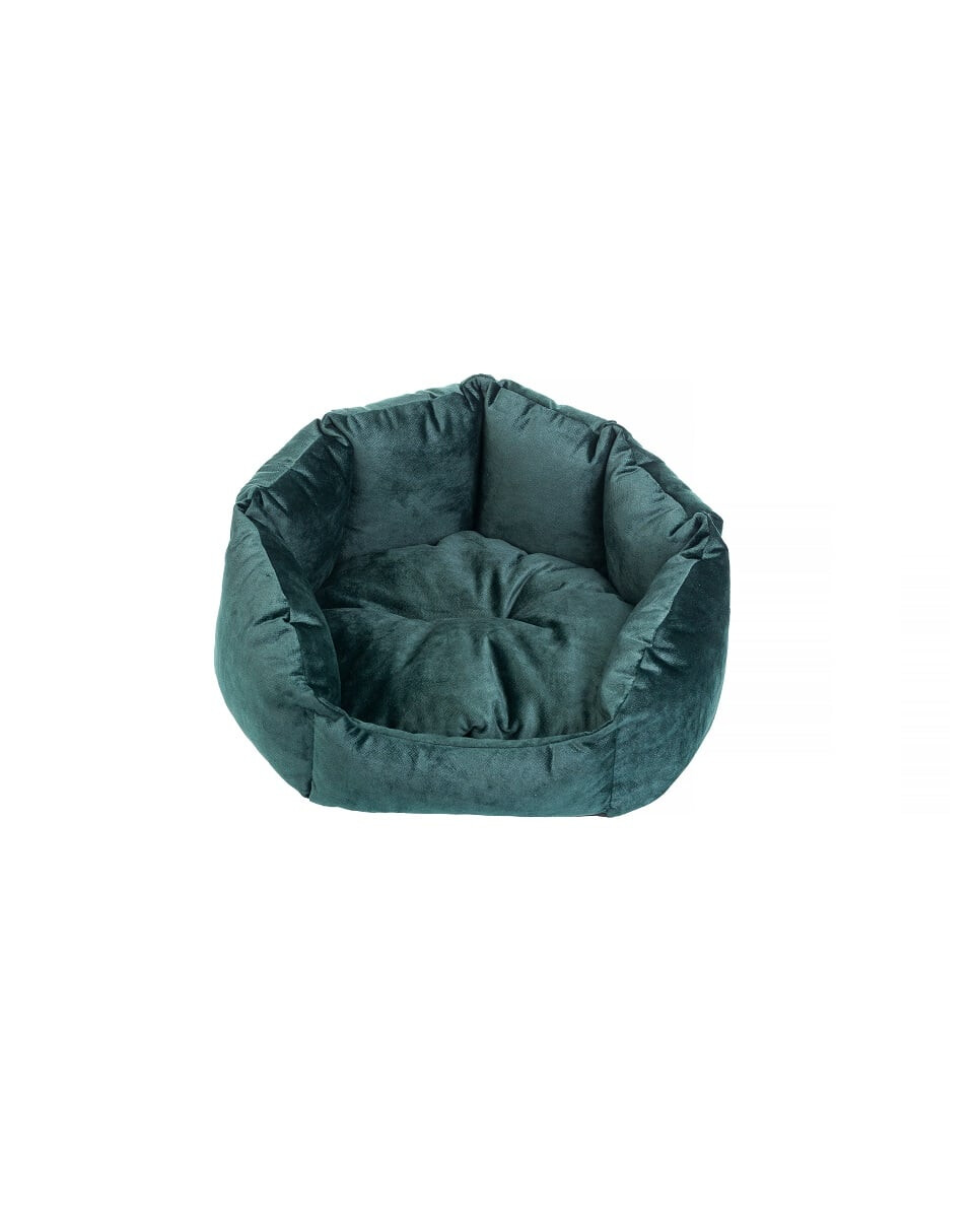 Aus angenehm zu berührendem Material. Die Füllung passt sich an den Körper und die Haltung des Tieres an. Die höheren Kanten des Bettes bieten Halt und Stabilität.