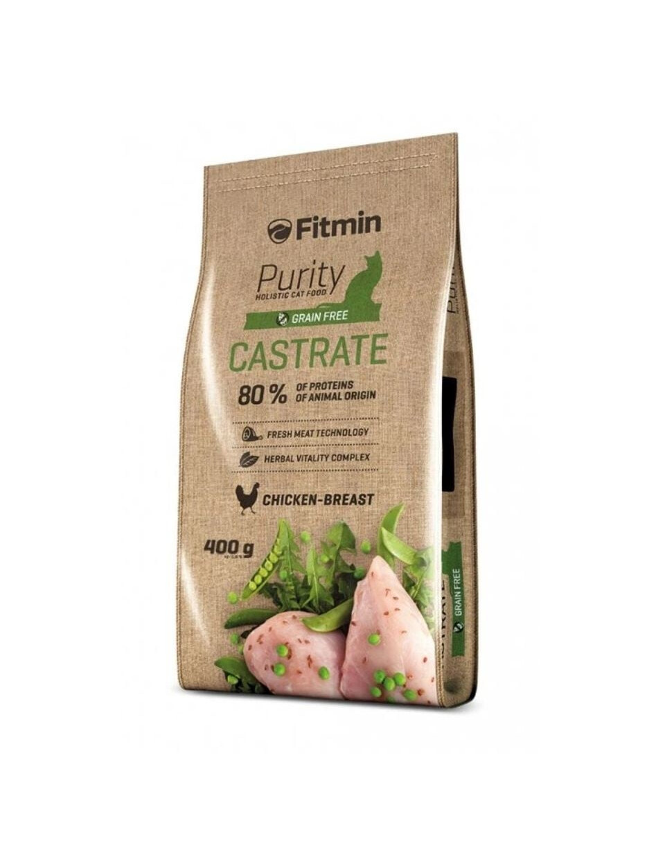 Fitmin Purity Castrate ist ein Alleinfuttermittel für ausgewachsene und sterilisierte Katzen mit einem tierischen Proteingehalt von 80%.