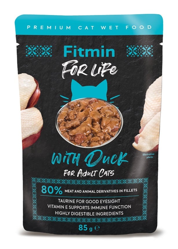 Zutaten: Fleisch und tierische Nebenerzeugnisse (80 % in Filets, davon 11,6 % Ente), pflanzliche Eiweißextrakte, pflanzliche Nebenprodukte (0,4 % Inulin), Mineralstoffe, Zucker.