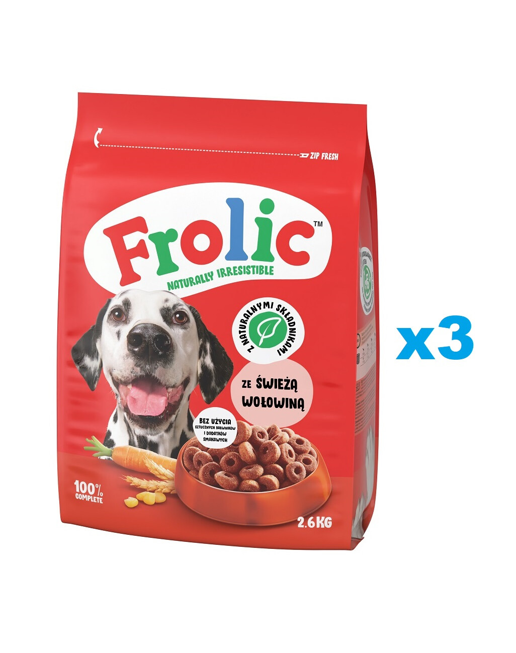 Frolic Naturally Irresistible mit frischem Rindfleisch ist ein vollwertiges, halbfeuchtes Hundefutter in Form von weichen und leckeren Scheiben. Diese leckeren Häppchen sind ideal zum Kauen und Beißen. Die sorgfältig ausgewählte Zusammensetzung enthält frisches Rindfleisch, natürliche Zutaten und Vollkorn. Die Rezeptur ist frei von Zucker und Palmöl. Wenn Sie Ihrem Haustier Frolic Naturally Irresistible füttern, können Sie sicher sein, dass es ihm nie langweilig wird. Es ist ein unwiderstehlicher Geschmack!