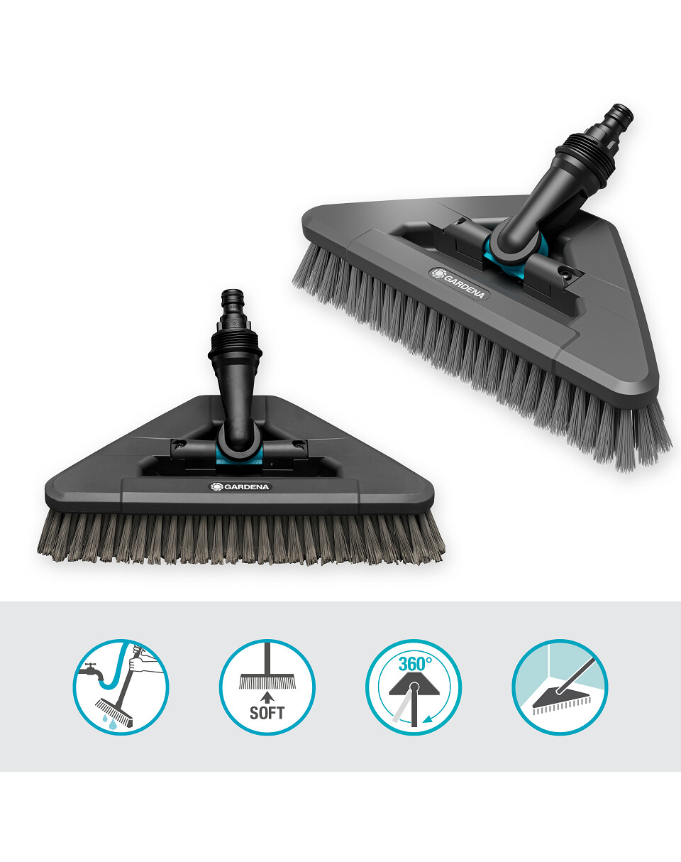 In Kombination mit dem Fließgriff ist ein besonders effektives Arbeiten auf empfindlichen Oberflächen möglich. Die Wirksamkeit der Bürste wird durch das GARDENA Shampoo noch verstärkt. Es kann einfach in den Spender am Ventilstiel eingelegt und nach Bedarf dosiert werden und ermöglicht eine bessere Reinigung der Oberflächen.