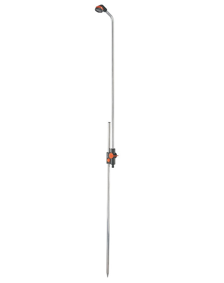 Die freistehende Gartendusche von GARDENA sorgt für ein erfrischendes Gefühl an heißen Tagen. Mit Hilfe der Spikes können Sie die Gartendusche einfach direkt auf den Rasen oder auf den Gartenschirmständer stellen. Die stufenlose Höhenverstellung mit Druckknöpfen sorgt dafür, dass sich die Handbrause perfekt an jede Körpergröße anpasst. Mit den Wasserregel- und Absperrventilen können Sie den Wasserfluss und das Wasserbild regulieren. Der sanfte Wasserstrahl des großen Duschkopfes garantiert eine angenehme Erfrischung.