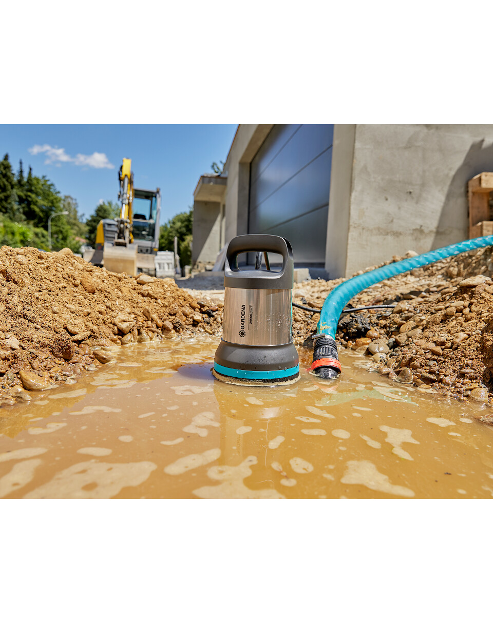 Wenn es darum geht, Teiche zu entleeren und zu reinigen, Wasser aus überfluteten Gruben auf Baustellen zu pumpen oder überflutete Keller zu trocknen, leistet diese hochmoderne Pumpe bei diesen und anderen Anwendungen einwandfreie Arbeit. Das Gerät zeichnet sich durch hohe Leistung und geringen Energieverbrauch aus - ein 750-W-Motor treibt die energieeffiziente Pumpe kräftig an. Mit einem Druck von 0,9 bar und einer Förderhöhe von 9 m kann sie dank ihrer bemerkenswerten Leistung bis zu 20.000 Liter Abwasser pro Stunde fördern. Das Gerät kann Schmutz bis zu einer Tiefe von 35 mm aufnehmen. Obwohl alle GARDENA Abwassertauchpumpen eine außergewöhnliche Leistung und Effizienz bieten, geht dieses Modell mit seiner elektronischen Aquasensor-Funktion noch einen Schritt weiter. Diese innovative Technologie macht das Pumpen noch einfacher und intuitiver. Der Aquasensor misst den Wasserstand ohne direkten Kontakt zum Wasserspiegel. Die gemessene Tiefe wird über eine praktische LED angezeigt und der Aquasensor steuert die Pumpe, um den gewünschten Wasserstand zu halten. Sie werden sich fragen, wie Sie es ohne Verschmutzungsanzeige und Trockenlaufschutz geschafft haben - jetzt funktioniert es zuverlässig und störungsfrei. Darüber hinaus verfügt die Pumpe über eine praktische Timerfunktion (10 Minuten) und ein intuitives Touchscreen-Bedienfeld. Die Pumpenschutztechnik und die hochwertige Verarbeitung mit einer langlebigen keramikbeschichteten Welle und dreifachen Dichtungen sorgen für die Langlebigkeit und Zuverlässigkeit der GARDENA Pumpe. Die Pumpe lässt sich auch in engen Räumen und anderen schwer zugänglichen Bereichen problemlos einsetzen. Auch dies ist sehr häufig der Fall. Ohne zusätzliche Kupplungen können Schläuche mit Durchmessern von 32 mm (1 ¼ Zoll), 38 mm (1 ½ Zoll) oder 50 mm (2 Zoll) mit der neuen, einfach zu bedienenden GARDENA Schnellkupplung an die Pumpe angeschlossen werden - mit nur einem Klick. Dank des G1 ½-Zoll-Anschlussgewindes kann die Tauchpumpe nach starken Regenfällen, Überschwemmungen oder Rohrbrüchen im Keller nicht zur Abwasserreinigung eingesetzt werden. Der Sensor Aquasensor 20000 von GARDENA ist unverzichtbar.