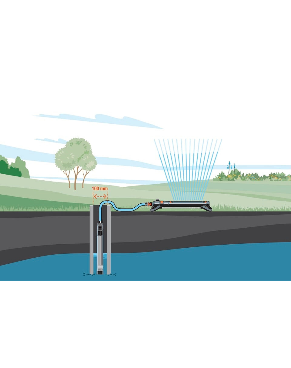 Die Edelstahl-Tauchpumpe 5500/5 ist für kleine Brunnen mit einem Durchmesser von 10 cm (gebohrt oder getrieben) geeignet.