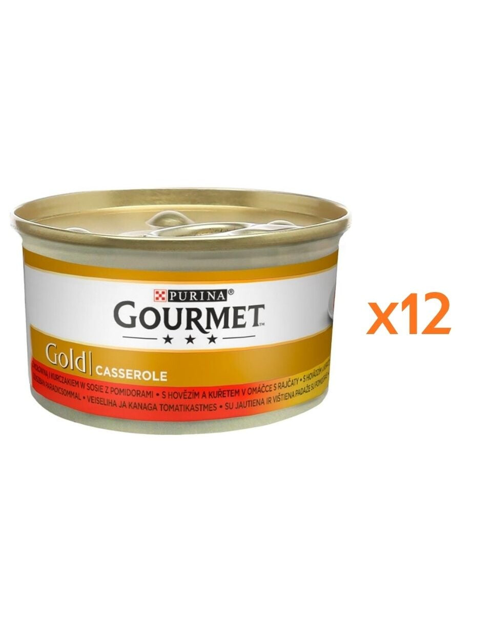 GOURMET Gold Casserole Nassfutter mit Rind und Huhn in Soße für adulte Katzen 12x85 g