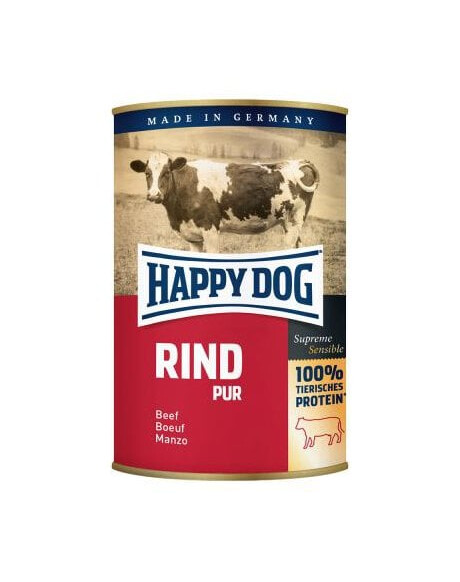 Happy Dog Rind Pur Hunde Nassfutter wird ausschließlich unter Verwendung von heimischem Rind, ohne Soja, ohne pflanzliche Zusätze sowie ohne Farb- und Konservierungsstoffe hergestellt. Rind Pur Hunde Nassfutter enthält nur eine einzige Proteinquelle und eignet sich deshalb besonders zur Fütterung bei Futtermittelunverträglichkeiten. Happy Dog Hunde Nassfutter ist ideal zum Mischen mit Happy Dog Flocken.