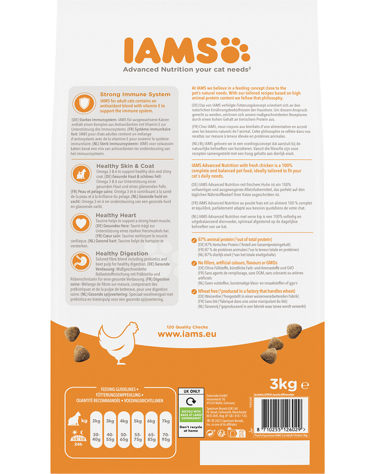 IAMS for Vitality Chicken für adulte Katzen mit Huhn 3 kg