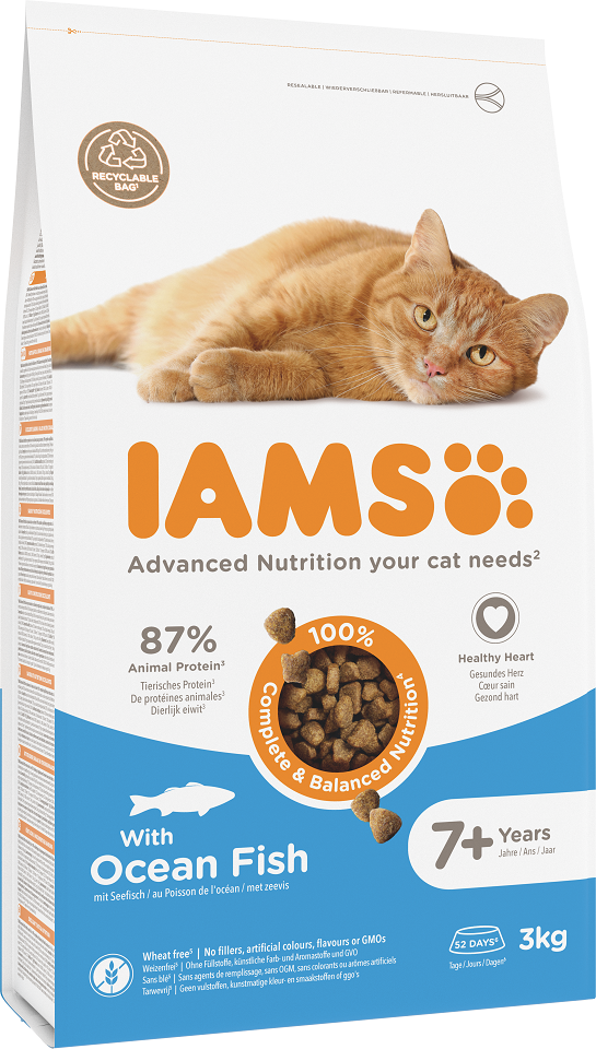 IAMS for Vitality Senior mit Seefisch ist ein 100 % vollwertiges und ausgewogenes, perfekt abgestimmtes Futter für ältere Katzen, das die 7 Kriterien zur Förderung der gesunden Vitalität Ihrer Katze wie ein auffällig schönes, glänzendes Fell und gesunde Haut erfüllt. Die ausgesprochen schmackhafte Rezeptur mit 88 % tierischen Proteinen (Anteil am Gesamtproteingehalt) wird Ihr Vierbeiner jeden Tag aufs Neue genießen.