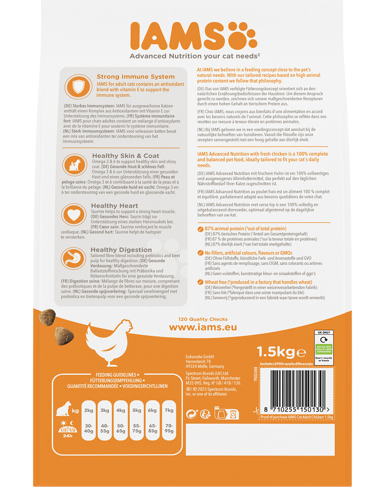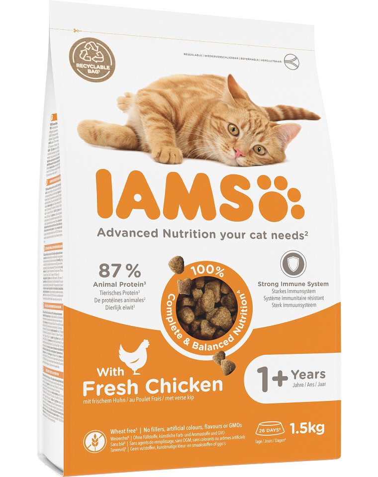 Die Futterrezeptur basiert auf Huhn und Pute und enthält 87 % tierisches Eiweiß. Entwickelt zur Unterstützung aller 7 Zeichen gesunder Vitalität bei Katzen. Eiweiß tierischen Ursprungs ist für das reibungslose Funktionieren des Katzenkörpers unerlässlich. Ein ausreichender Gehalt an Vitaminen und Mineralstoffen sowie eine hohe Schmackhaftigkeit sind die Vorteile dieses Futters.