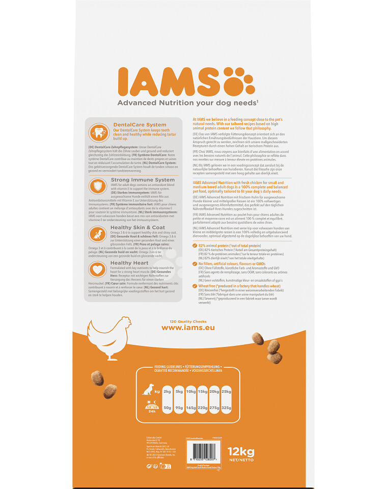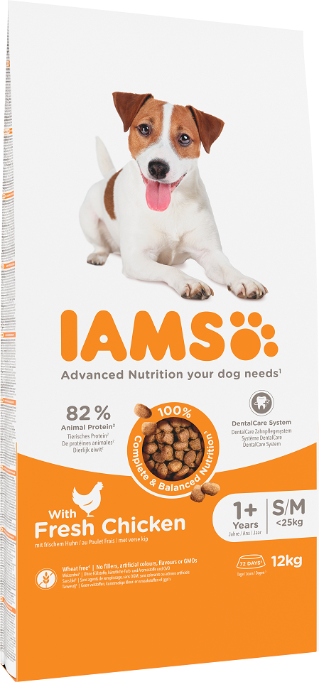 Das Futter ist ohne Weizen formuliert und basiert auf getrocknetem Huhn und Truthahn. Es ist ein ausgewogenes und schmackhaftes Futter und enthält 82 % tierisches Eiweiß. Die Größe der Chips ist an die Kiefer von kleinen und mittelgroßen Hunden angepasst. Essentielle Mineralien und Vitamin D unterstützen die Knochen Ihres Hundes, während eine geeignete Antioxidantienmischung mit den Vitaminen C und E das Immunsystem unterstützt.