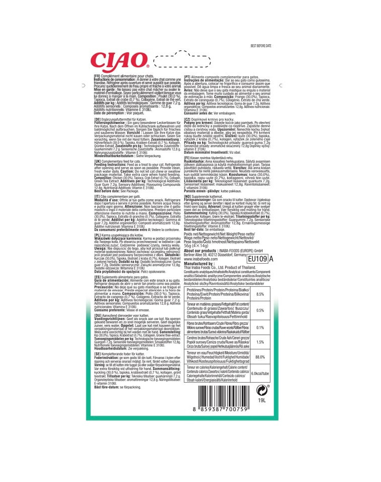 Cremiger Leckerbissen mit Hühnergeschmack und Krabben für Katzen.
