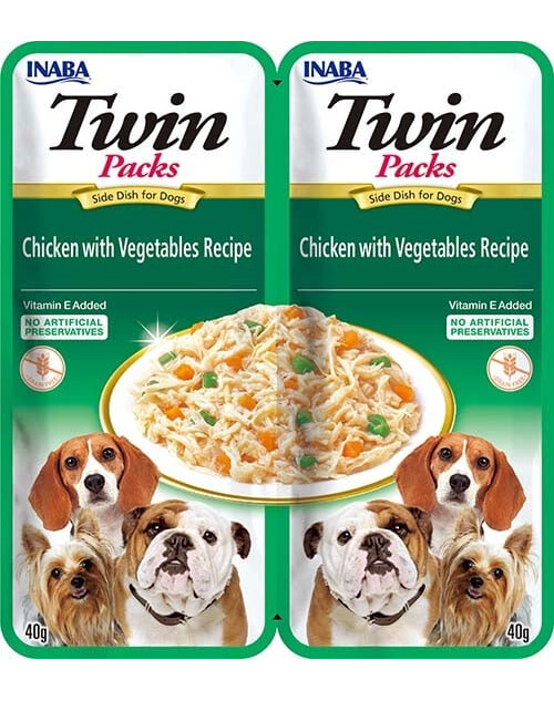 Ergänzungsfuttermittel für Hunde. Rezeptur mit Huhn und Gemüse in Hühnerbrühe.